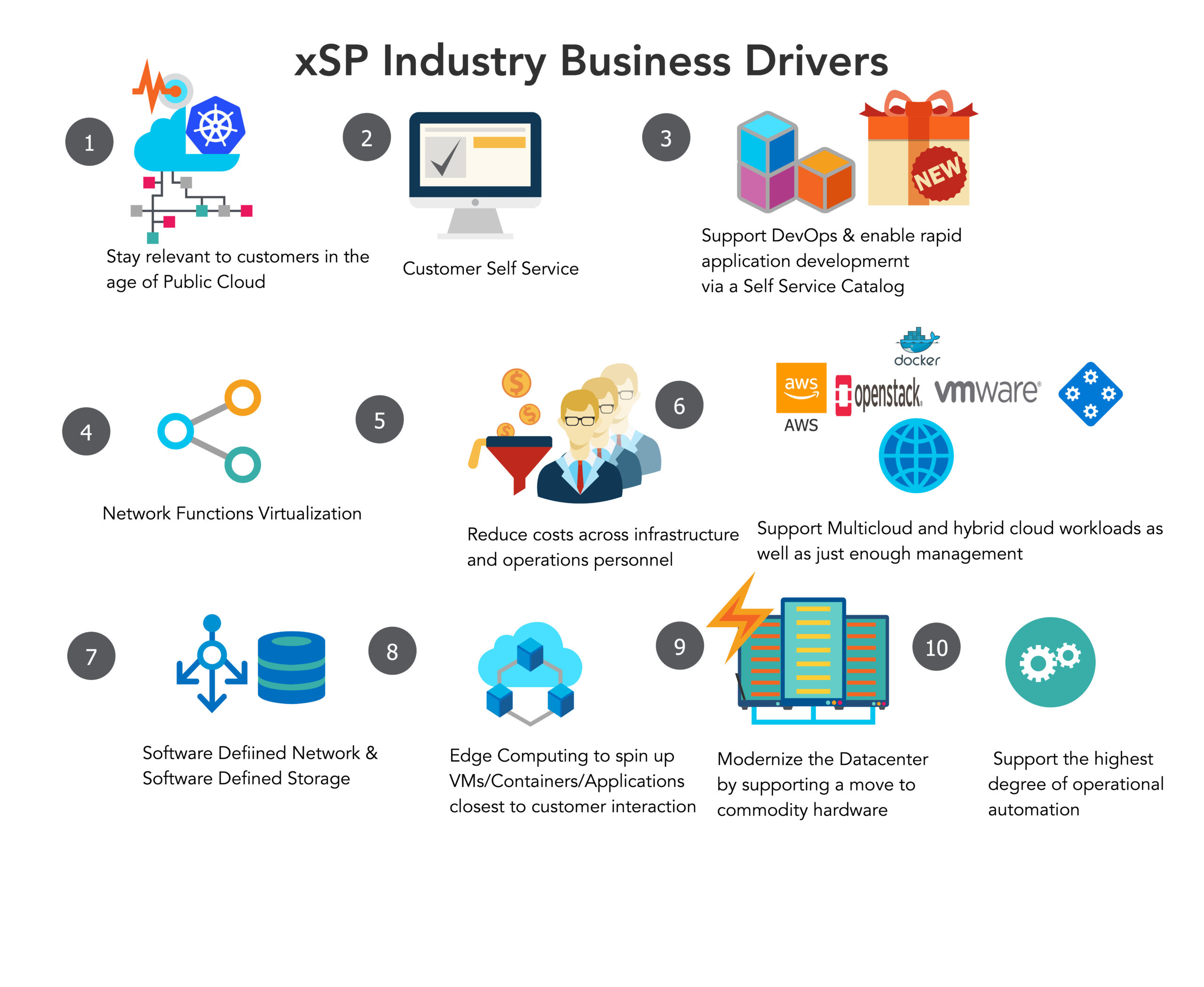 Thus, from an infrastructure point of view – xSP’s need to turn their legacy data centers into a public cloud-like infrastructure – a key area they’re unable to execute on. Let’s take a look into the key business drivers that drive this cyclic nature of cloud infrastructure optimizations, and how xSPs are moving through the various stages of their journey.